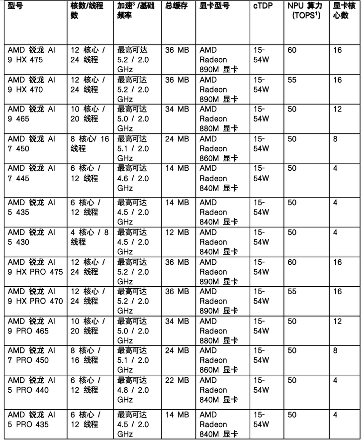 AMD 通过全新的锐龙 AI 400 系列与锐龙 AI PRO 400 系列处理器,为消费级与商用 Windows 11 AI+ PC 带来新一代 AI 体验,打造速度超快、智能化程度超高且安全性超强的 Windows PC。这两大系列处理器均基于先进的 “Zen 5” 架构打造,并搭载采用第二代 AMD XDNA 2 架构的 NPU,NPU AI 算力至高可达 60 TOPS,全面超越 Windows 11 AI + PC 的 TOPS 性能要求,实现无缝流畅的本地 AI 计算体验。凭借最高 12 个高性能 CPU 核心,集成 AMD Radeon 800M 系列显卡,并支持更高的内存频率,这些处理器可在多种系统与设备形态中释放领先性能、实现超长电池续航,并提供更智能的计算性能。