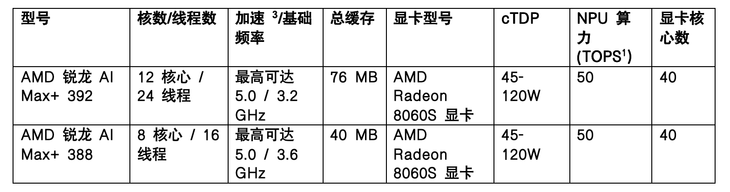 AMD宣布推出锐龙 AI Max+ 392与锐龙 AI Max+ 388 处理器,作为 锐龙 AI Max+ 系列的新成员,将高性能 AI 计算能力、集成的桌面级显卡性能以及统一内存架构引入高端超轻薄笔记本、工作站以及紧凑型迷你PC。得益于良好的早期采用率,锐龙 AI Max+ 处理器助力 OEM厂商打造 Windows 11 AI + PC,在不牺牲便携性与用户体验的前提下,同时优化高强度创作与 AI 工作负载以及沉浸式游戏体验。